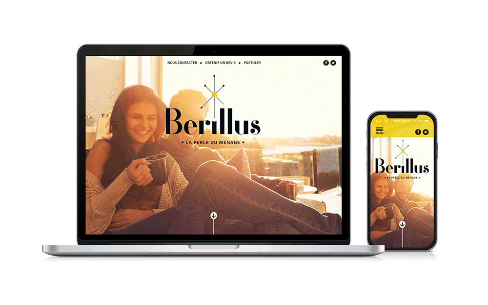 LANCEMENT DE MARQUE | Conception, identité graphique, direction artistique. Logo, print, papeterie, site responsive, flyer. La fusion du mot bérillos [briller] et Beryl [pierre précieuse] est la base du concept.